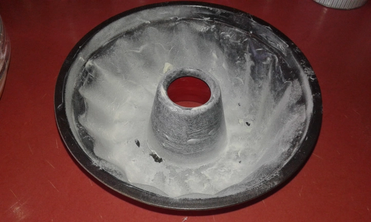 Kalup namazati omekšalim margarinom,i posuti brašnom,kako se kolač ne bi zalepio. Višak brašna otresti.